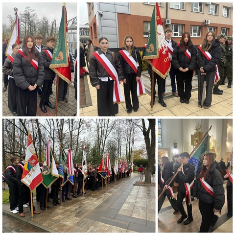 W dniu dzisiejszym (11.11.2025 r.) odbyły się Powiatowe Obchody 107 Rocznicy Odzyskania Niepodległości w Dąbrowie Tarnowskiej. Uroczystość rozpoczął przemarsz prowadzony przez Orkiestrę Dętą przy Dąbrowskim Domu Kultury do kościoła parafialnego NMP Szkaplerznej w Dąbrowie Tarnowskiej na Mszę Świętą w intencji Ojczyzny. Od godziny 10:30 w Parku Miejskim pod Pomnikiem Poległych Synów Miasta Dąbrowy rozpoczną się uroczystości Patriotyczne na które zapraszamy wszystkich mieszkańców Dąbrowy Tarnowskiej i Okolic. Szkoła Podstawowa nr 3 im. Bohaterów Powiśla Dąbrowskiego była reprezentowana w tych obchodach przez poczet sztandarowy w składzie: Maja Stachoń, Julia Hajdas, Laura Pochopień, Gabriela Garstka, Piotr Mrówka i Bartłomiej Korzec. Opiekunami pocztu sztandarowego byli: pani Sylwia Marciniec i pan Artur Pobiegło. Dziękujemy młodzieży za zaangażowanie.