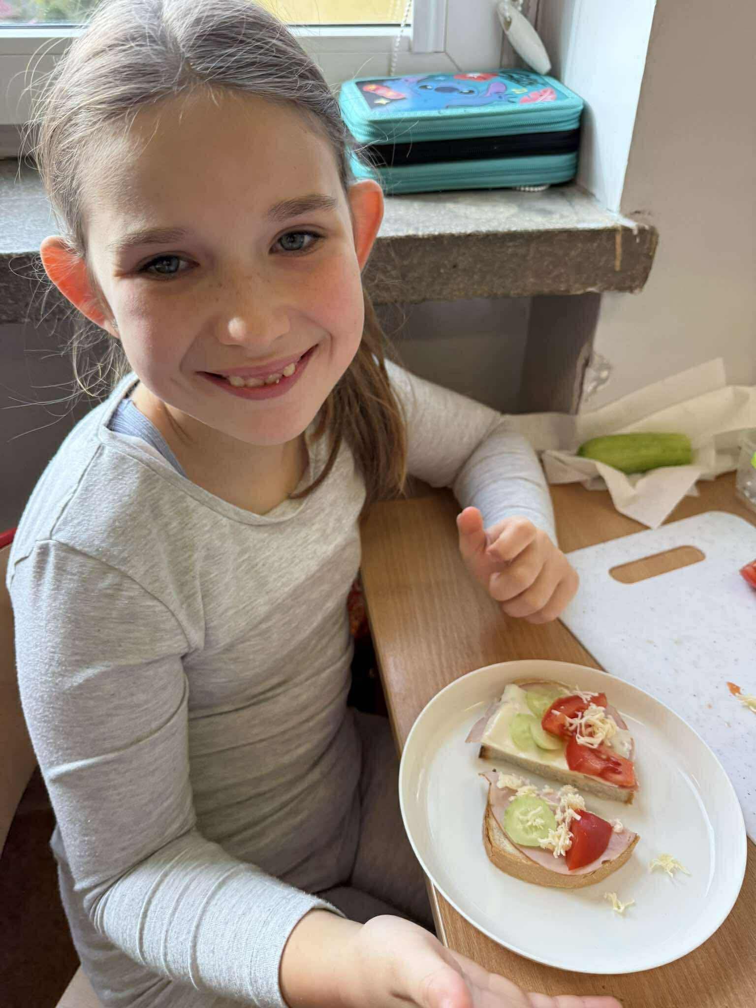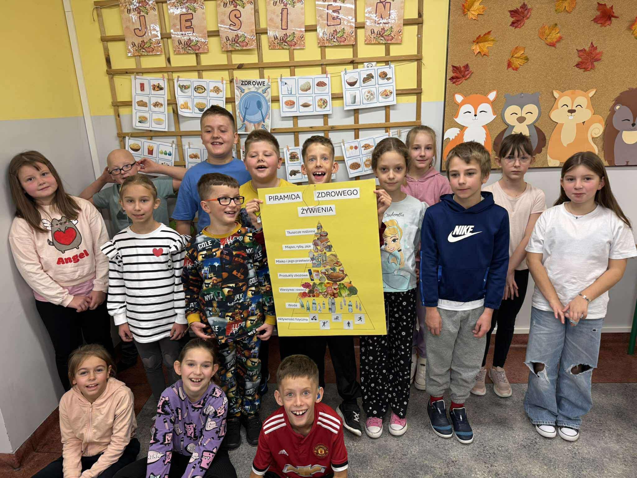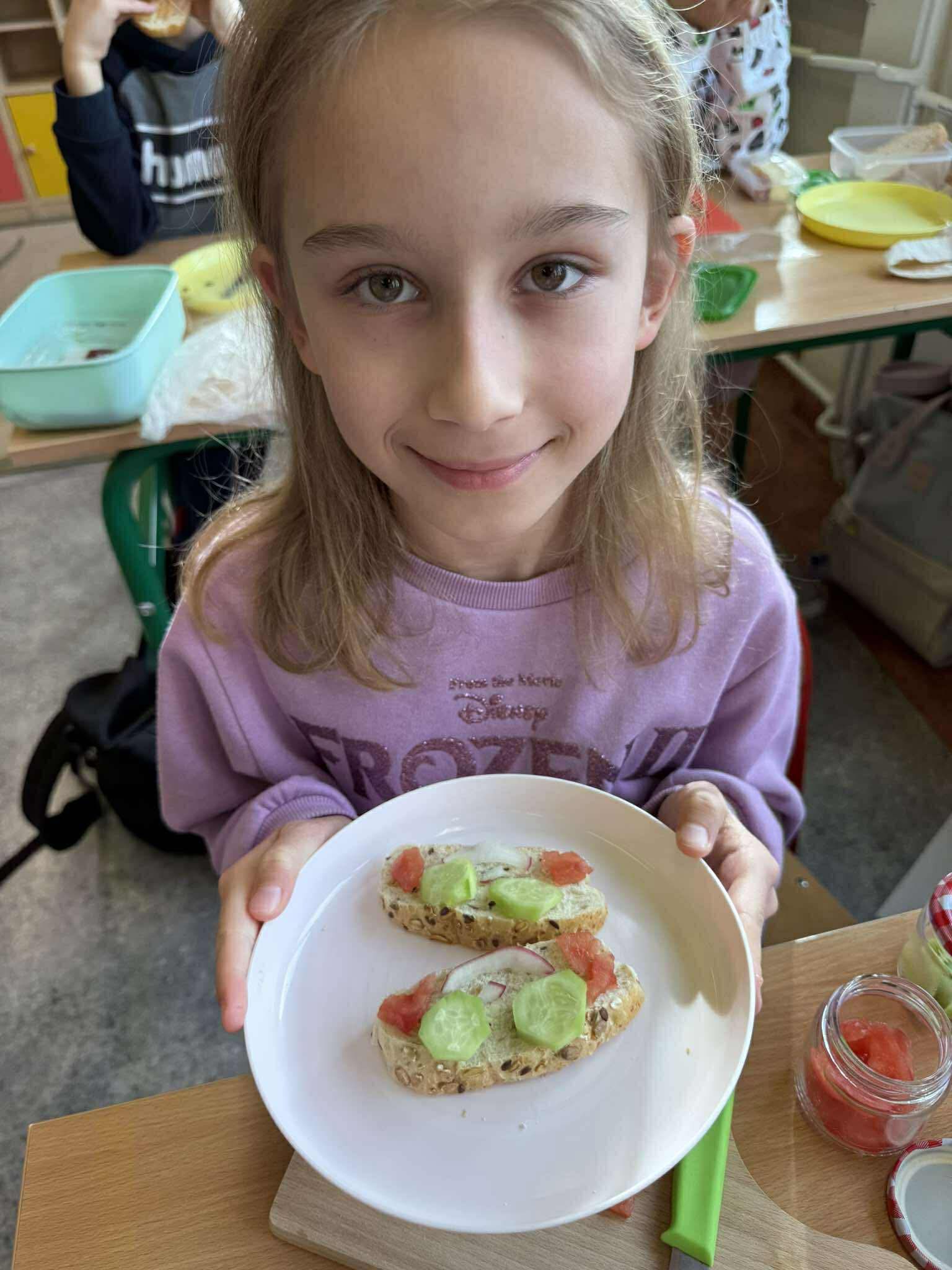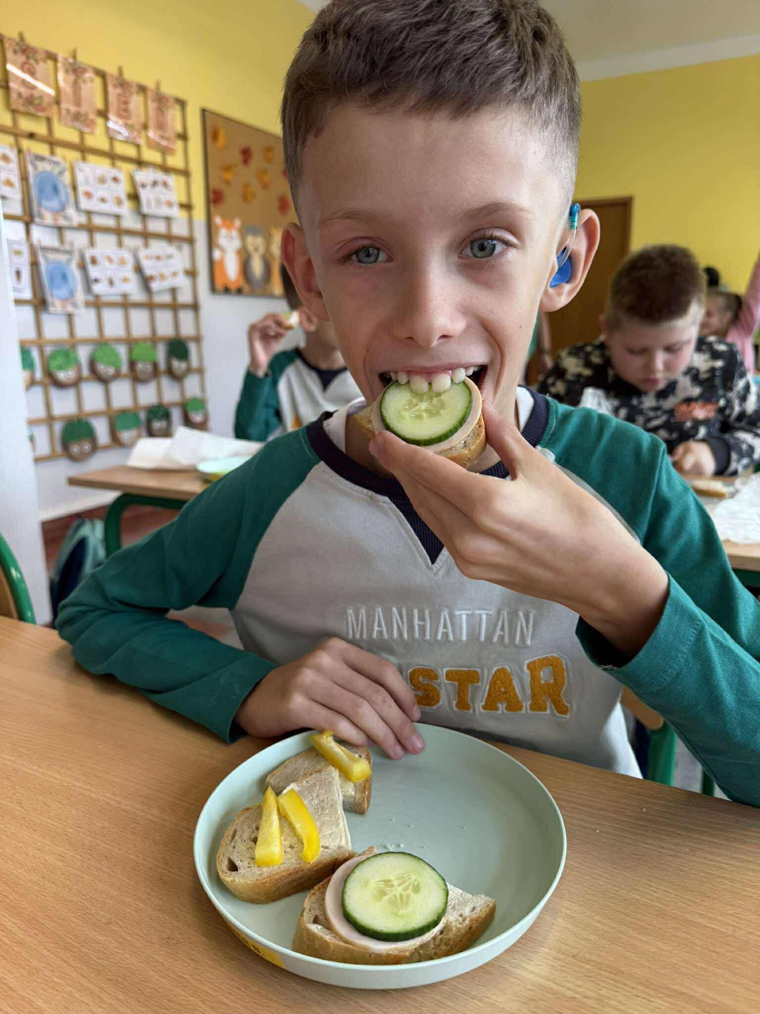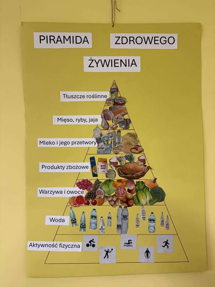 W tym tygodniu uczniowie klasy 3b poznawali zasady zdrowego odżywiania. Podczas zajęć dowiedzieli się, jak ważne jest zrównoważone jedzenie, aktywność fizyczna i wybór wartościowych produktów. W grupach wykonali Piramidę Zdrowego Żywienia, przygotowali kolorowe prace plastyczne pt. „Talerz pełen zdrowia”, a na zakończenie zajęć – samodzielnie przygotowali własne zdrowe kanapki. Zajęcia dostarczyły uczniom wiele radości i inspiracji do zdrowego stylu życia.