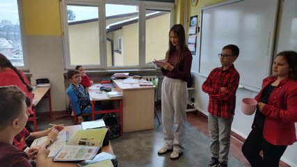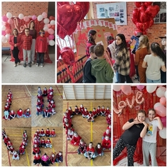 Dziś (18.02.2026 r.) w naszej szkole odbyła się wyjątkowa zabawa walentynkowa, zorganizowana przez Samorząd Uczniowski. Z tej okazji uczniowie otrzymali numerki, a ich zadaniem było odnalezienie swojej „drugiej połówki”, czyli osoby z takim samym numerem. Każda odnaleziona para z takim samym numerem otrzymała słodką niespodziankę – lizaki w kształcie serca. Zabawa dostarczyła wielu emocji, uśmiechu i okazji do integracji. Samorząd Uczniowski przygotował również tematyczną ściankę do zdjęć, przy której uczniowie chętnie robili pamiątkowe fotografie w walentynkowym klimacie. Dodatkowo Samorząd rozdał walentynki, dzięki czemu w szkole panowała miła, życzliwa atmosfera. Wiele osób założyło czerwone akcenty w swoich strojach, co jeszcze bardziej podkreśliło walentynkowy charakter wydarzenia.To był dzień pełen radości, dobrej zabawy i pozytywnej energii. Dziękujemy wszystkim za wspólne świętowanie.