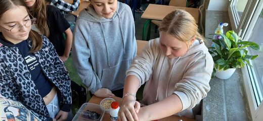 Owocowe koktajle w klasie 5b, w ramach projektu Szkoła Promująca Zdrowie