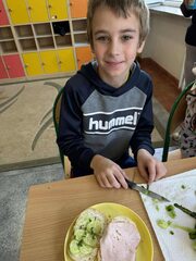 W tym tygodniu uczniowie klasy 3b poznawali zasady zdrowego odżywiania. Podczas zajęć dowiedzieli się, jak ważne jest zrównoważone jedzenie, aktywność fizyczna i wybór wartościowych produktów. W grupach wykonali Piramidę Zdrowego Żywienia, przygotowali kolorowe prace plastyczne pt. „Talerz pełen zdrowia”, a na zakończenie zajęć – samodzielnie przygotowali własne zdrowe kanapki. Zajęcia dostarczyły uczniom wiele radości i inspiracji do zdrowego stylu życia.