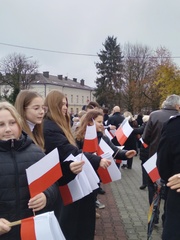 Udział pocztu sztandarowego SP3 Dąbrowa Tarnowska w Powiatowych Obchodach 107 Rocznicy Odzyskania Niepodległości.