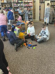Udział uczniów klas 2b i 3a w zajęciach "Trójkąty ukryte w bajkach" w Bibliotece Publicznej w Dąbrowie Tarnowskiej