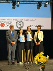 17 kwietnia 2026 roku Zespół Szkół im. K.K. Baczyńskiego w Dąbrowie Tarnowskiej, we współpracy z Dąbrowskim Domem Kultury, zorganizował XXIII Dzień Pamięci o Holokauście i Przeciwdziałaniu Zbrodniom Przeciwko Ludzkości. Tegoroczne obchody odbyły się pod hasłem „Nie masz już w Polsce żydowskich miasteczek” i zgromadziły uczniów z całego powiatu dąbrowskiego. W ramach wydarzenia, które miało miejsce w Dąbrowskim Domu Kultury, przeprowadzono konkursy artystyczne. Umożliwiły one młodzieży wyrażenie swoich refleksji poprzez różnorodne formy – fotografię, śpiew, taniec oraz recytację. W konkursie wokalnym naszą szkołę reprezentowała Martyna Pater z klasy VIII a, która zdobyła I miejsce. W konkursie recytatorskim szkołę reprezentowali Aleksandra Świątek z klasy IV a oraz Jakub Drąg z klasy VII a. Był to wyjątkowy dzień, podczas którego młodzi ludzie pokazali, że pamięć o ważnych wydarzeniach historycznych można wyrażać na wiele sposobów. Gratulujemy wszystkim uczestnikom i życzymy dalszych sukcesów oraz inspiracji do podejmowania kolejnych działań.