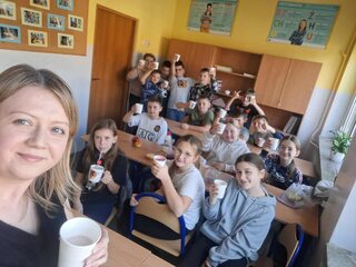 Owocowe koktajle w klasie 5b, w ramach projektu Szkoła Promująca Zdrowie