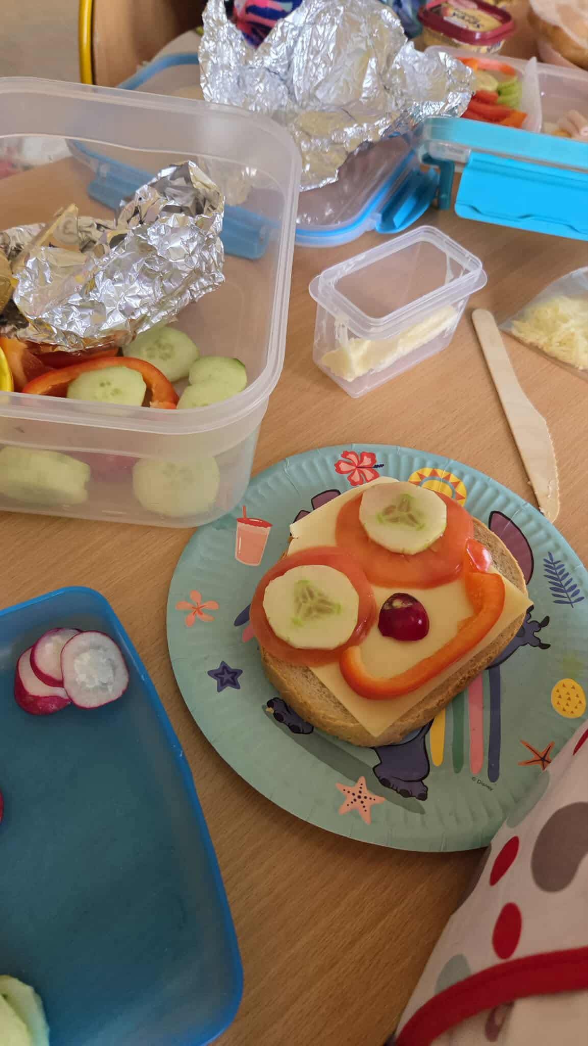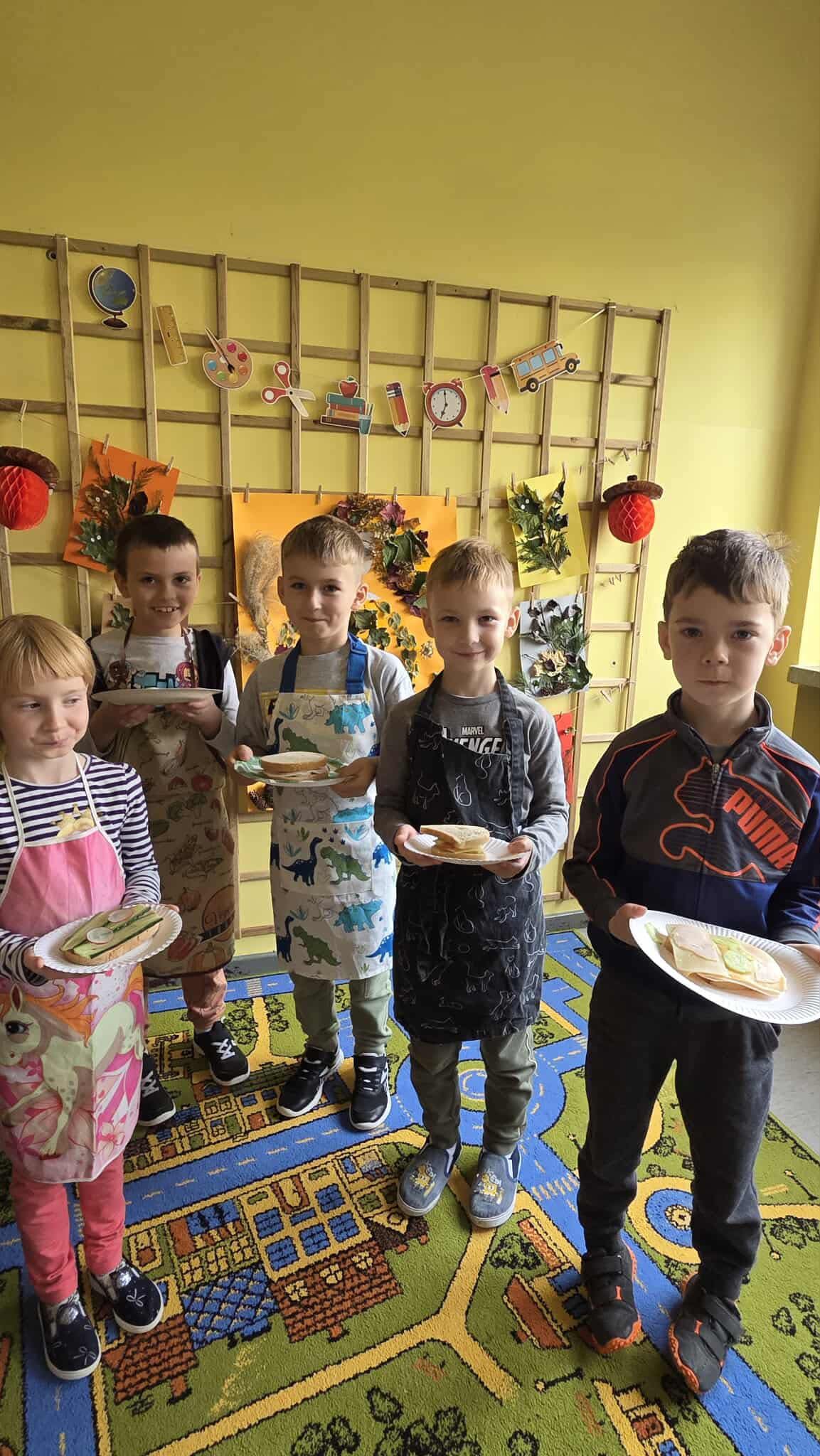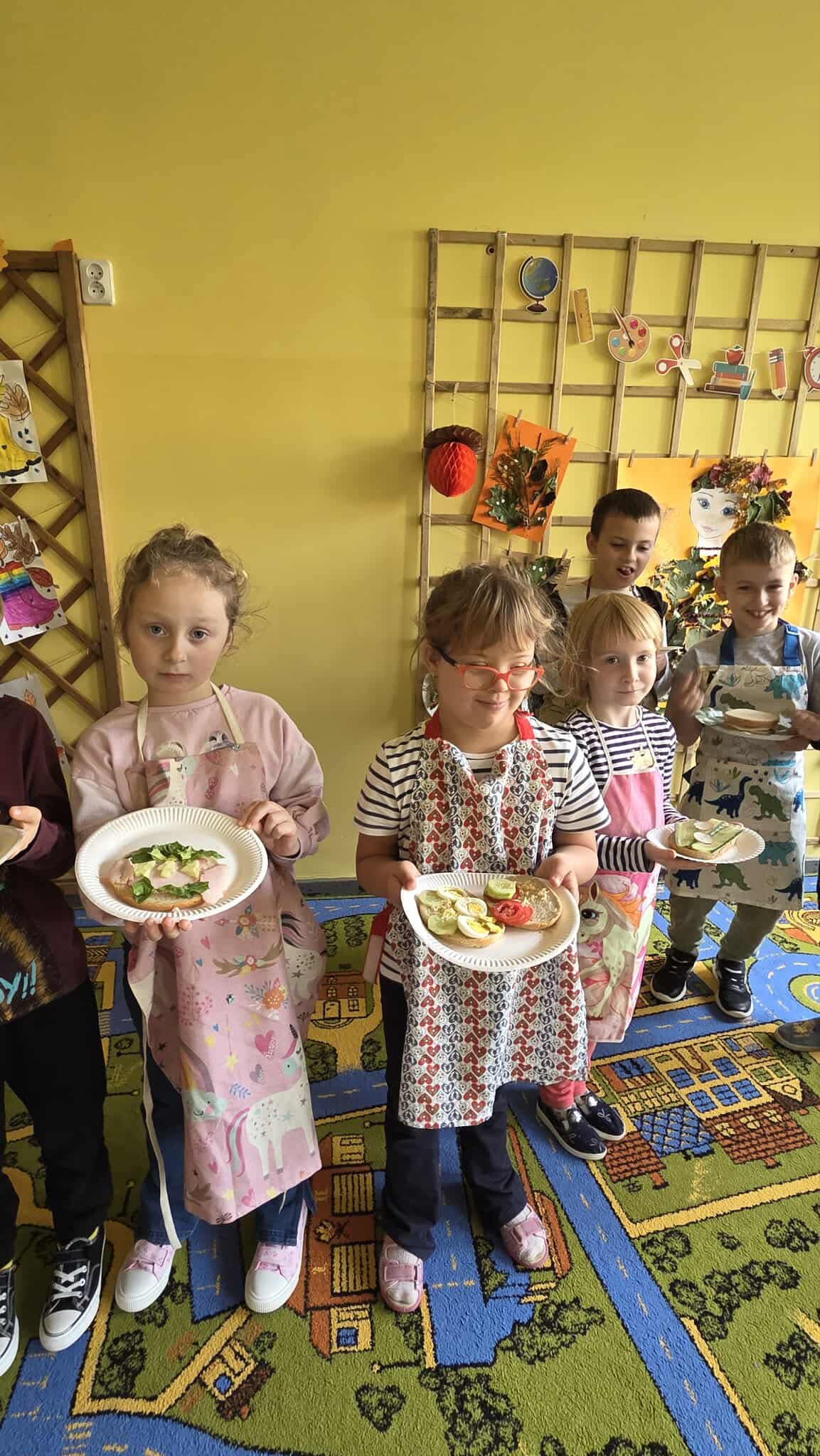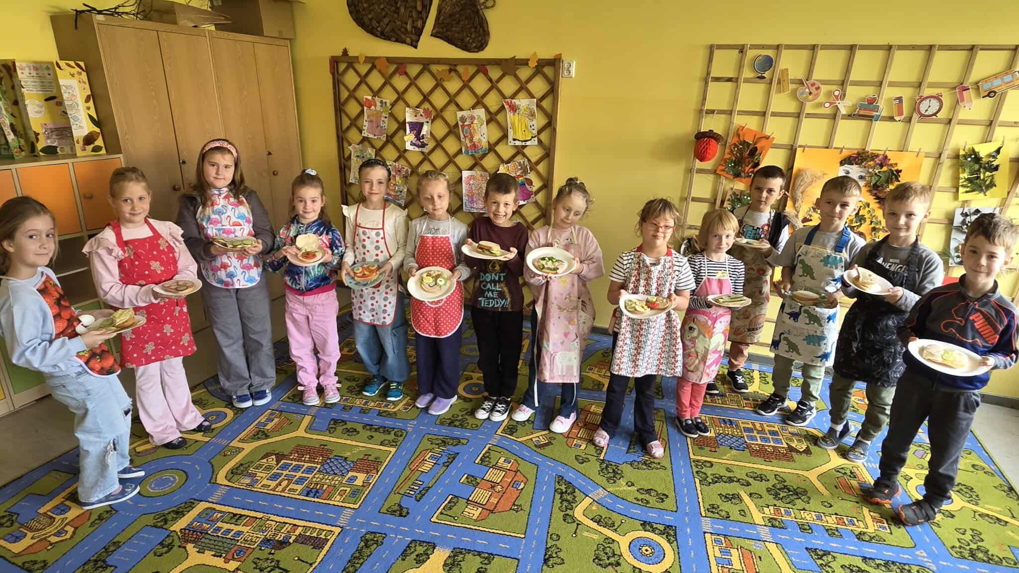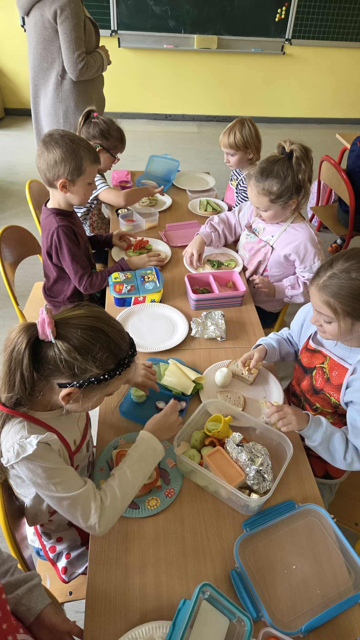W ramach projektu „Szkoła Promująca Zdrowie” uczniowie klasy 1b przygotowali pożywne i kolorowe śniadanie. Podczas zajęć dzieci poznawały zasady zdrowego odżywiania oraz dowiedziały się, jak ważne jest jedzenie śniadania. Z wielkim zaangażowaniem samodzielnie komponowały swoje kanapki, zwracając uwagę na estetykę podania i różnorodność składników. Wspólne przygotowywanie posiłku było nie tylko świetną zabawą, ale także okazją do rozmowy o wartościach odżywczych oraz kształtowania dobrych nawyków żywieniowych. Zajęcia łączyły naukę z praktyką – było smacznie, zdrowo i radośnie!