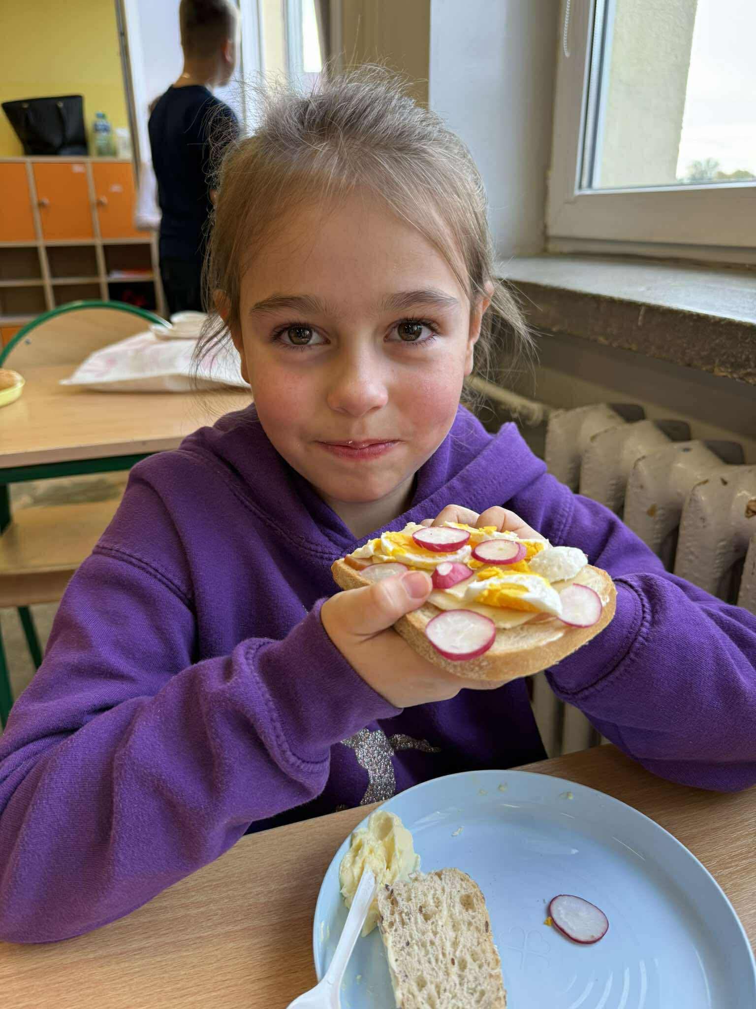 W tym tygodniu uczniowie klasy 3b poznawali zasady zdrowego odżywiania. Podczas zajęć dowiedzieli się, jak ważne jest zrównoważone jedzenie, aktywność fizyczna i wybór wartościowych produktów. W grupach wykonali Piramidę Zdrowego Żywienia, przygotowali kolorowe prace plastyczne pt. „Talerz pełen zdrowia”, a na zakończenie zajęć – samodzielnie przygotowali własne zdrowe kanapki. Zajęcia dostarczyły uczniom wiele radości i inspiracji do zdrowego stylu życia.