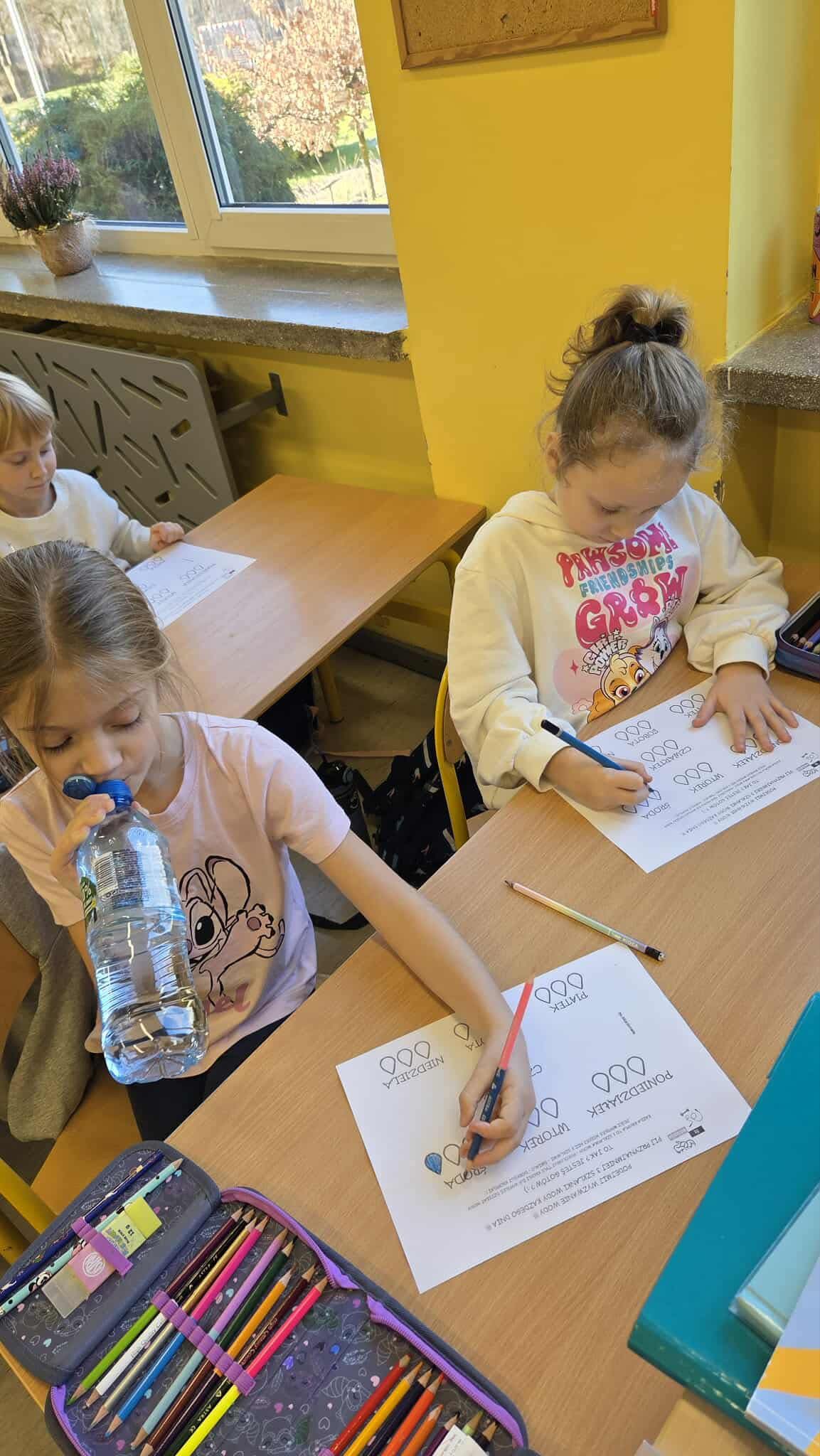 Dziś rozmawialiśmy o tym, dlaczego warto wybierać wodę zamiast słodkich napojów. Dzieci poznały korzyści picia wody, sprawdzały, ile cukru kryje się w popularnych napojach i wspólnie doszły do wniosku, że najlepszym wyborem na co dzień jest… zwykła woda! Uczniowie wykonali plakaty zachęcające do picia wody, a na koniec otrzymali gotową kartkę do codziennego zaznaczania, ile szklanek wody wypili każdego dnia tygodnia. Wspieramy zdrowe nawyki i dbamy o dobre samopoczucie naszych uczniów.