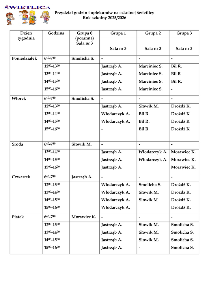 Wniosek rodziców o objęcie ucznia zajęciami świetlicowymi